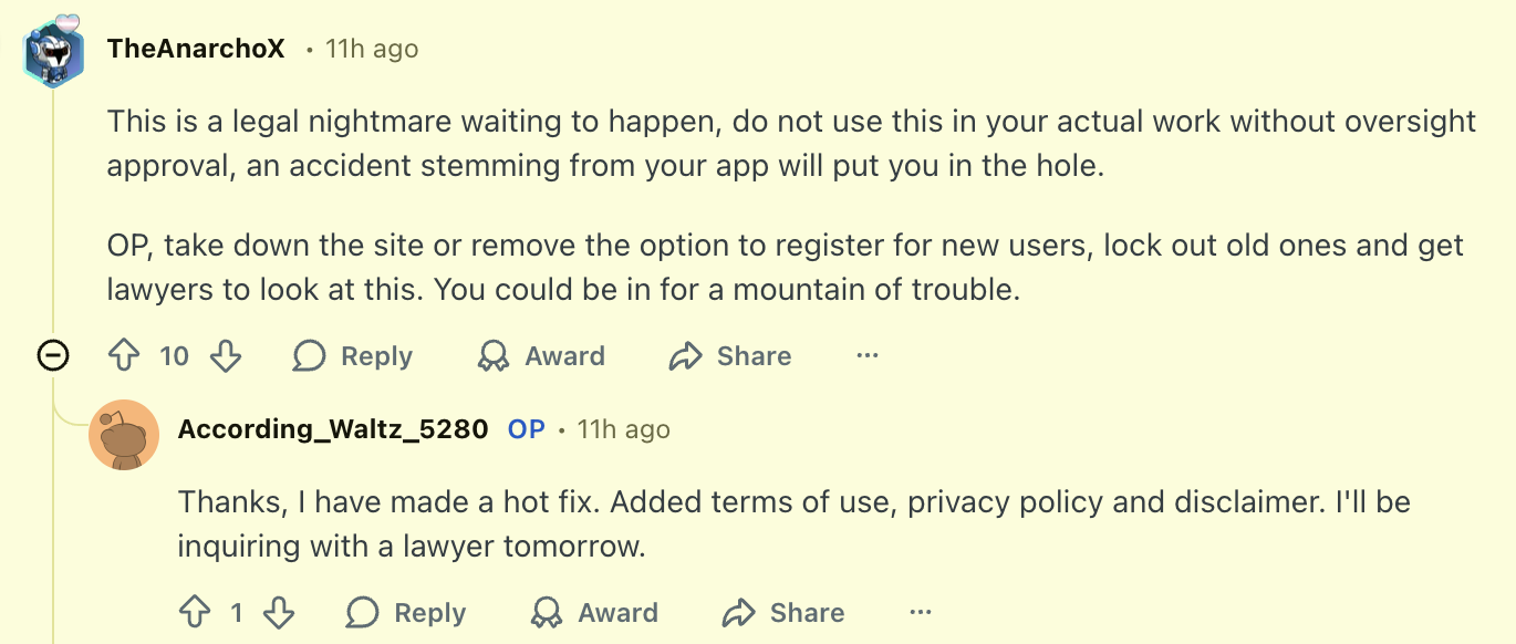But this is always the tradeoff. Allow non-developers to ship apps with a non-developer’s understanding of the nuances that could be involved—generally with regard to legal compliance, data privacy, and security. You know…the boring stuff that becomes a huge and very un-boring problem later.